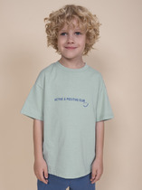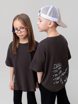 Футболка для девочки из трикотажного полотна "кармеланж" с приспущенным плечом, втачными короткими рукавами, горловиной овальной формы, обработанной втачной планкой и принтом на полочке, выполненным в технике шелкографии. По шву втачивания планки в горловину настрочена отделочная строчка.