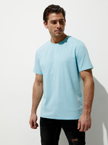 Футболка мужская из меланжированного трикотажного полотна "кулирка", свободного покроя, со спущенным плечом и втачными короткими рукавами. Горловина овальной формы обработана втачной планкой. По шву втачивания планки настрочена двойная отделочная строчка. В центре переда - принт, выплненный в технике шелкографии.