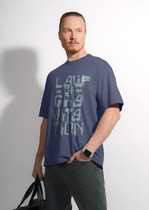 Футболка мужская из трикотажного полотна "кулирка-варенка", с короткими рукавами покроя "реглан", горловиной овальной формы, обработанной втачной планкой, и принтом в центре детали переда, выполненным в технике шелкографии. По швам реглана и горловине настрочены отделочные строчки.