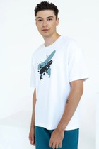 Мужская футболка из кулирки. Короткие рукава, круглая горловина, украшена печатью, прямой силуэт.