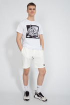 Мужская футболка из кулирки. Короткие рукава, круглая горловина, украшена печатью, прямой силуэт.