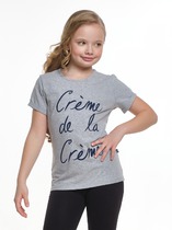 Футболка из меланжевого трикотажа, декорированная зеркальным принтом в виде зебры с бахромой по бокам. Свободный крой, круглый вырез горловины, декоративный вырез на спинке снизу.На ребенке представлен размер 140:- Ширина изделия по линии груди 39,5 см- Ширина по низу изделия 42 см- Длина изделия 55,5 смРазница между размерами составляет 1,5 см.