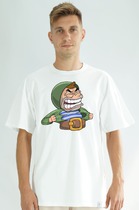 Футболка с круглым вырезом горловины свободного силуэта и со спущенной линией плеча. Модель декорирована тематическим принтом. Футболка удачно сочетается с любыми поясными изделиями данной коллекции, а так же с брюками и шортами Almando Melado.