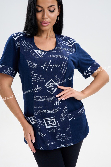 Удобная трикотажная футболка с карманами и декоративными вставками с набивным рисунком.Футболка с рельефными швами, которые создают стройный силуэт Вашей фигуры, но в тоже время обеспечивают максимум комфорта в применении.Практичная модель футболки дополнена функциональными карманами.