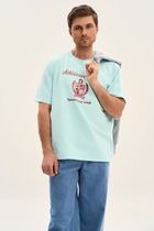 Мужская футболка из кулирки с лайкрой. Футболка с короткими рукавами, принт в виде надписей, вышитый шильд справа спереди, четыре расцветки — белая, ментоловая, темно-синяя и серый меланж. Размеры от 46 до 54. Есть возможность розничного заказа.