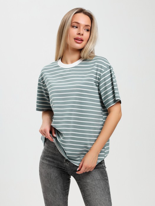 Футболка молодежная из трикотажного полотна "кулирка" с лайкрой с набивным рисунком "полоса", классического покроя, с короткими втачными рукавами и горловиной овальной формы, обработанной втачной планкой из контрастного трикотажного полотна «рибана».