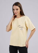 Джемпер свободного покроя из тонкого трикотажного полотна. Вырез горловины- неглубокий, округлой формы с отрезной планкой. Рукава- со спущенной линией плеча. Изделие декорировано печатным принтом.