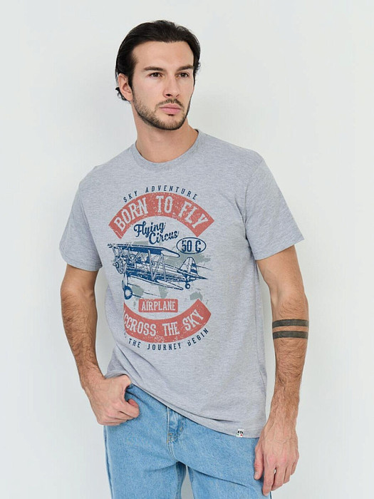 Совместные покупки Курган Мужская одежда Футболки — Футболка F5 154048/02285/Airplane серый меланж