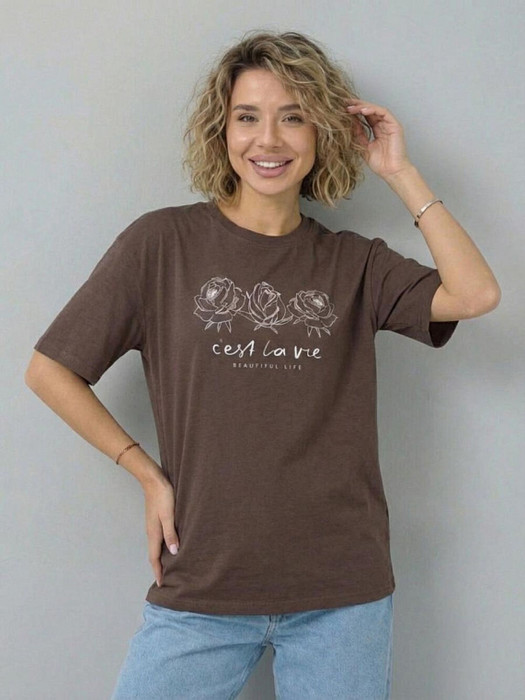 Совместные покупки Курган Женская одежда Футболки — Футболка F5 164103/12716/Life шоколадный