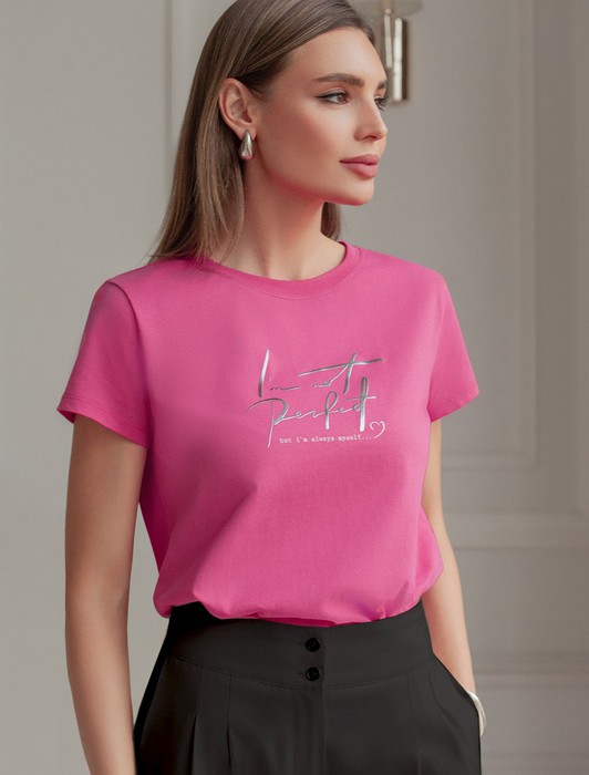 Состав: 100%Хлопок Плотность: 140 Г/м2Перевод принта: "I am not perfect, but I'm always myself - я не идеальна, но я всегда настоящая". Футболка прямого кроя выполнена из 100% хлопка. Базовая модель дополнена лаконичным авторским принтом. Легко впишется в повседневный гардероб. Изделие хорошо держит форму и обеспечивает комфортный микроклимат в течение дня.