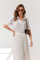 Состав: 95%Хлопок 5%ПУ Плотность: 230 Г/м2 Параметры модели на первом фото: Рост 170, бюст 83, талия 64, бедра 88Футболка с воротом стойка выполнена из фактурного трикотажа в рубчик. Модель идеально сидит по фигуре не сковывая движения. Хлопковый трикотаж поддерживает оптимальную температуру тела, поэтому в изделии будет комфортно в течении всего дня. Наличие эластана в составе гарантирует формоустойчивости. Базовая модель впишется в любой гардероб и подойдет для офисного дресс-кода.