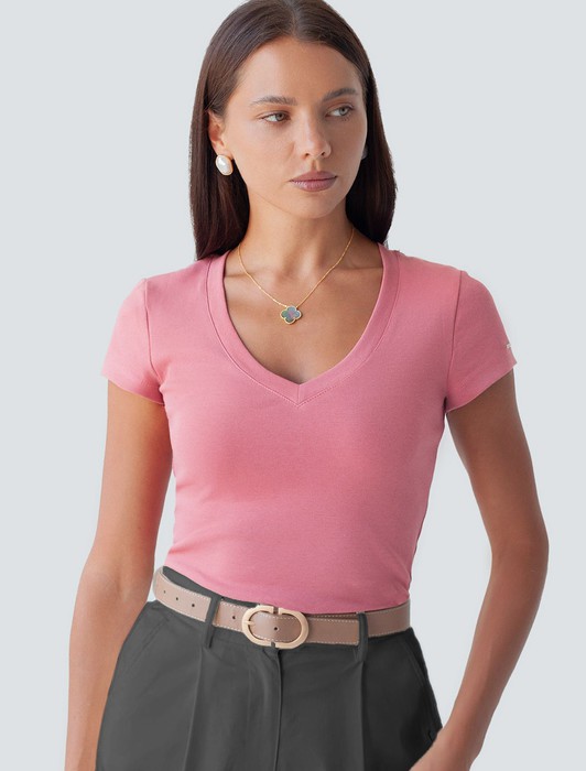 Состав: 95%Хлопок 5%ПУОблегающая футболка с V-образным вырезом оттенка "туманная роза" создаст утонченный образ. Идеальная базовая модель для вашего гардероба! Глубокий V-образный вырез подчеркивает линию шеи и зрительно удлиняет силуэт. Футболка выполнена из хлопка с добавлением эластана, которая мягко облегает контуры тела, подчеркивая достоинства фигуры. Универсальный вариант для создания стильных повседневных образов.