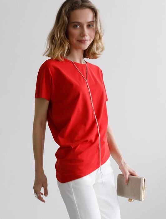 Совместные покупки Курган Женская одежда Джемперы, свитеры, водолазки — Футболка из премиального хлопка с ассемитричным низом