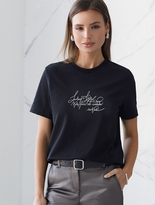 Совместные покупки Курган Женская одежда Футболки — Футболка из премиального хлопка с авторским принтом