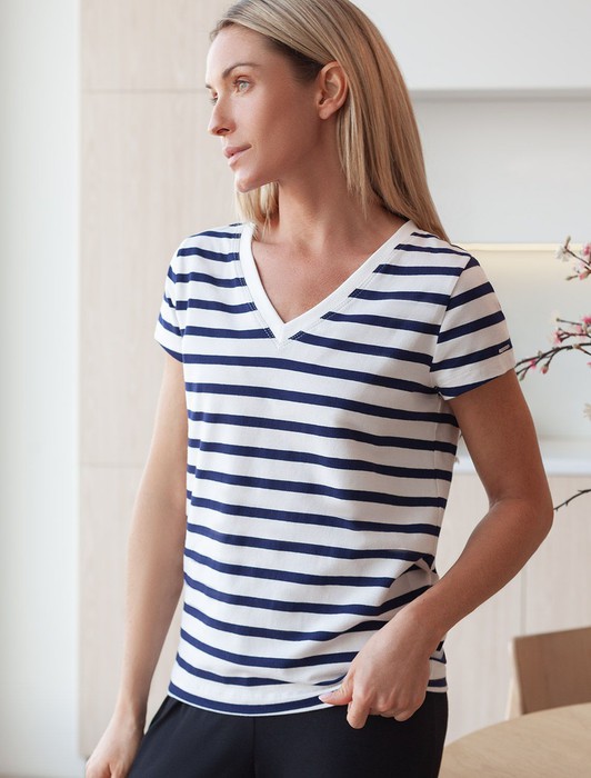 Состав: 92%Хлопок 8%ПУ Плотность: 170 Г/м2 Параметры модели на первом фото: Рост 172, бюст 88, талия 64, бедра 88Футболка с V-образным вырезом выполнена из премиального хлопка. Добавление эластана в состав изделия способствует формоустойчивости. Самое высокое качество длинноволокнистых хлопковых волокон обеспечивает комфорт в любое время года. Изделие дополнено металлическим логотипом бренда.