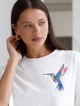 Джемпер свободного кроя. Удлиненный рукав, с подворотом. Принт методом термопереноса, цифровая печать. Ткань кулирная гладь , качество Пенье, плотность 200 г.м2