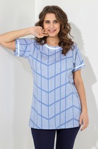 Стильная молодёжная футболка в стиле Casual, из хлопкового трикотажного полотна. Модель свободной формы с  коротким рукавом. Горловина оформлена полосатой тесьмой-довязом. Перед модели декорирован стильной дизайнерской печатью.