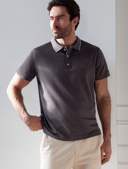 Футболка поло с плетеным воротником на пуговицах из эластичного хлопка