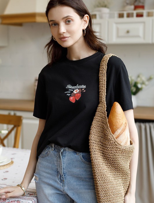 Особое внимание привлекает стильный принт в виде клубники с минималистичной надписью. Перевод надписи: Strawberries sweet summer days - Клубничные сладкие летние дни. Принт выполненны красками с устойчивым покрытием, который добавляет изделию оригинальности и позволяет выразить индивидуальность.