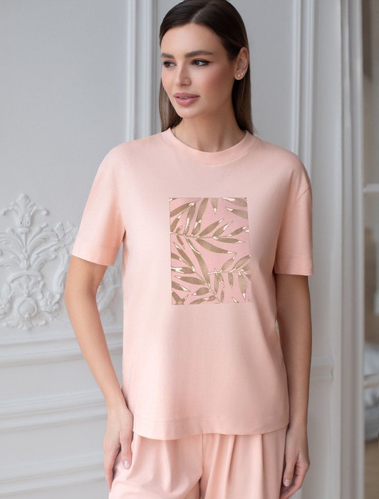 Состав: 100%Хлопок Плотность: 140 Г/м2Футболка пудрового цвета выполнена из премиального 100% хлопка плотностью 140 Г/м2. Главная особенность этого изделия — тонкое кулирное полотно, которое легче и воздушнее стандартного варианта. Благодаря своей деликатной текстуре футболка идеально подходит для домашних образов и пижамных комплектов. Ткань отлично дышит, обеспечивая максимальный уют во время сна и отдыха. Особое внимание привлекает стильный минималистичный принт в виде листьев. Принт выполнен красками с устойчивым покрытием, который добавляет изделию оригинальности и позволяет выразить индивидуальность. Свободный крой футболки дарит удобство и не стесняет движений, что делает ее идеальной для повседневной носки или активного отдыха, подчеркивает современный взгляд на моду. Подойдет девушкам и женщинам на любую фигуру, вы будете чувствовать себя в ней уверенно и комфортно. Лаконичный современный принт делает изделие универсальным: можно создавать стильные образы для прогулок, встреч, занятий спортом и домашних дел. Базовая футболка подходит для любой ситуации и сочетается с разными элементами гардероба.