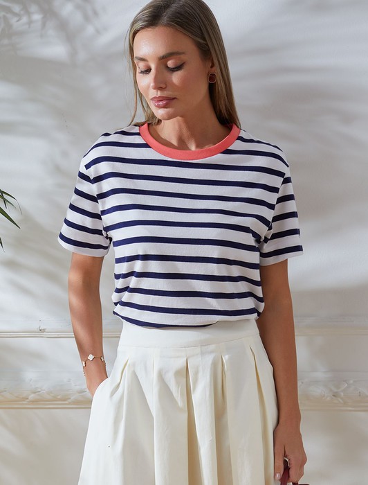 Состав: 92%Хлопок 8%ПУ Плотность: 170 Г/м2 Параметры модели на первом фото: Рост 172, бюст 88, талия 64, бедра 88 Размер товара на первом фото: 42Базовая футболка в бело-синюю полоску выполнена из премиального дышащего хлопка с добавлением эластана. Эта футболка идеально подходит для создания стильного образа. Классический вариант на лето или как нижний слой в прохладное время года.Футболка отлично держит форму и не теряет привлекательности даже после многочисленных стирок. Базовая полосатая футболка с ярким акцентом легко комбинируется с различными предметами гардероба и станет неотъемлемой частью вашего образа. Футболка из натурального хлопка идеально подойдет для создания стильных и молодежных образов. Модная футболка в полоску – это возможность выразить себя и подчеркнуть свою уникальность.