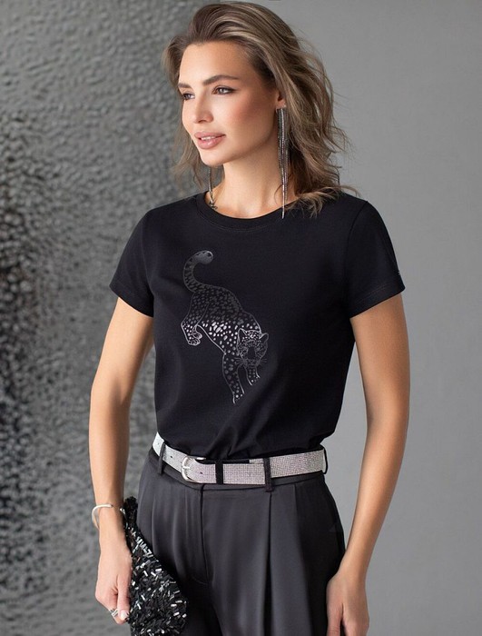Совместные покупки Курган Женская одежда Футболки — Футболка Vilatte D49.123 черный_леопард