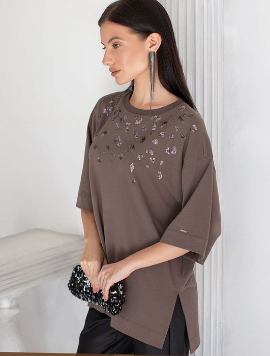Футболка Vilatte D49.125 кофе_пайетки