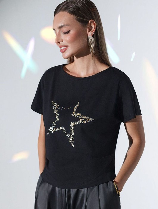 Совместные покупки Курган Женская одежда Футболки — Футболка Vilatte D49.133 черный_star