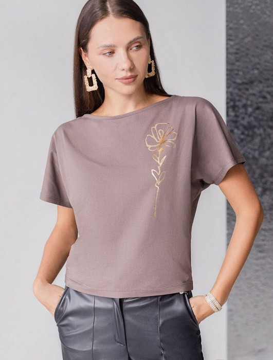 Совместные покупки Курган Женская одежда Футболки — Футболка Vilatte D49.133 кофейный_цветок