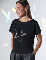 Эта нарядная футболка подходит для создания образа на каждый день и идеально подойдет на выход. Модель не мнется, что делает ее практичным вариантом для активных женщин, которые ценят стиль и удобство.