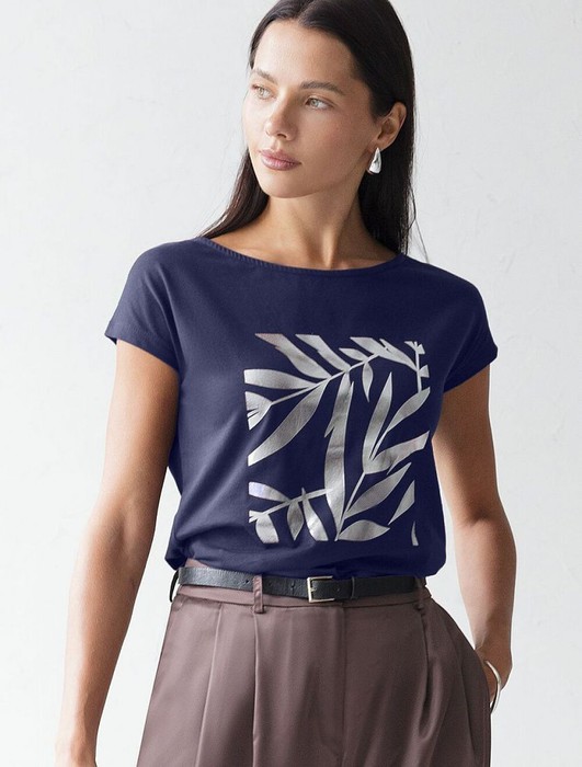 Совместные покупки Курган Женская одежда Футболки — Футболка Vilatte D49.134 т.синий_листики
