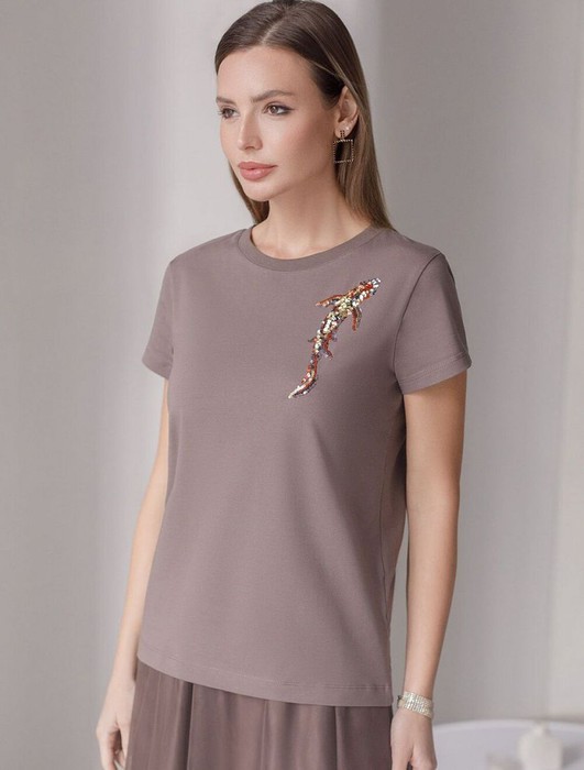 Совместные покупки Курган Женская одежда Футболки — Футболка Vilatte D49.135 кофейный_рыба