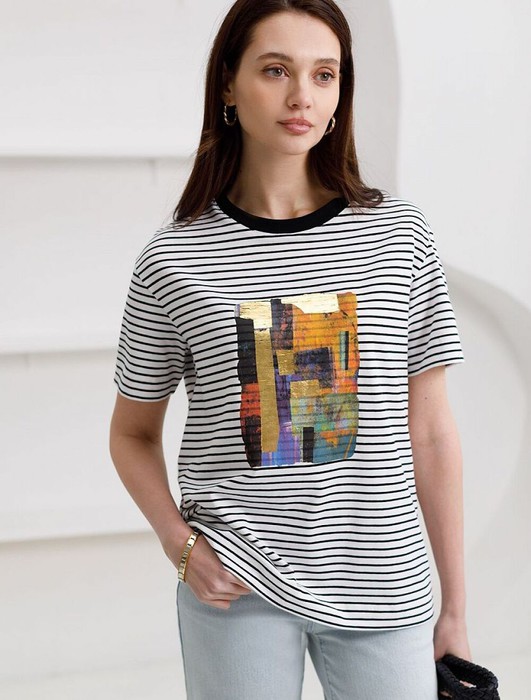 Совместные покупки Курган Женская одежда Футболки — Футболка Vilatte D49.145 белый-черный_абстракция