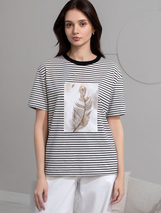 Совместные покупки Курган Женская одежда Футболки — Футболка Vilatte D49.145 белый-черный_перо