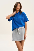 Футболка женская из гладкокрашенного трикотажного полотна «кулирка», свободного силуэта, с боковыми швами, переходящими в рельефы, в правом соединительном шве выполнен разрез. Горловина овальной формы обработана втачной планкой и дополнена декоративным элементом.
