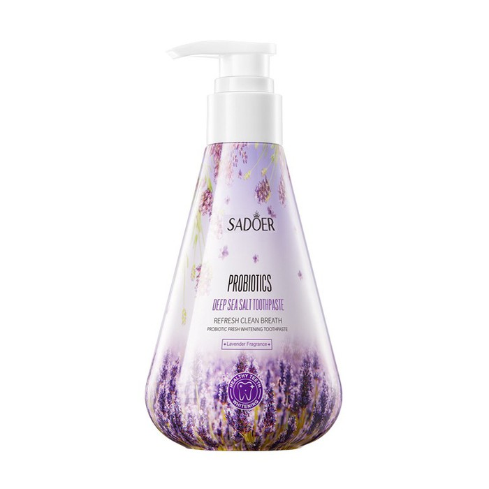 Гелевая отбеливающая зубная паста ЛАВАНДА с пробиотиками и солью Sadoer, 220 гр.