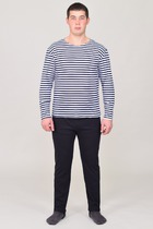 Халат из кулирки с короткими рукавами. На пуговицах, длина по колено, сбоку накладной карман. Две расцветки — ментоловая и розовая. Слева темно-синие и белые полоски, справа принт в виде стилизованных бабочек. Размеры от 44 до 58. Есть возможность приобретения в розницу.