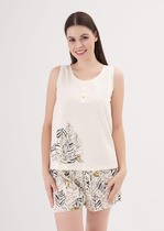 Халат женский из трикотажного полотна «кулирка» с набивным рисунком, на запахе, с втачными длинными рукавами, съемным поясам, продетым в две шлевки, вставленные в боковые швы на уровне линии талии. На правой полочке на уровне бедер – накладной карман прямоугольной формы. Борта и горловина обработаны притачной планкой. Верхний срез кармана и нижние срезы рукавов отделаны кружевом.