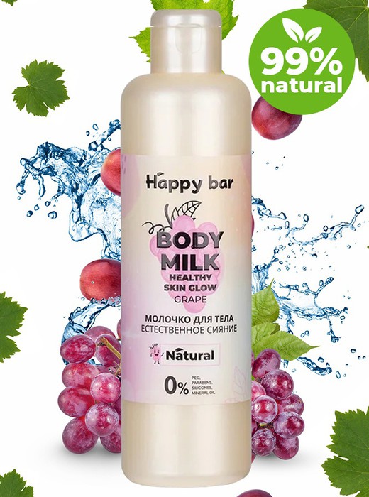Состав: деионизированная вода с экстрактом винограда, масло рапса, октилдодеканол, глицерилмоностеарат, растительный глицерин, цетеариловый спирт, гель алоэ вера, масло пальмы, аллантоин, токоферол (витамин Е), бензиловый спирт, бензоат натрия, сорбат калия, молочная кислота, ароматическая композиция.