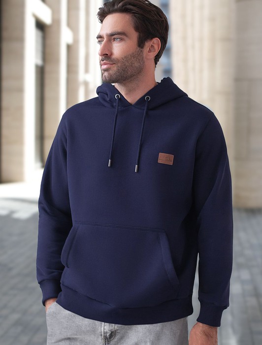 Состав: 80%Хлопок 20%ПЭ Плотность: 320 Г/м2Худи выполнено из премиального эластичного футера трехнитки с теплым начесом. Уютная и классическая модель с капюшоном и карманом-кенгуру дополнена нашивкой с логотипом бренда из эко-кожи. Свободный крой не сковывает движений. Высококачественная фурнитура цвета темное серебро. Изделие сочетается в костюме с брюками U44.006
