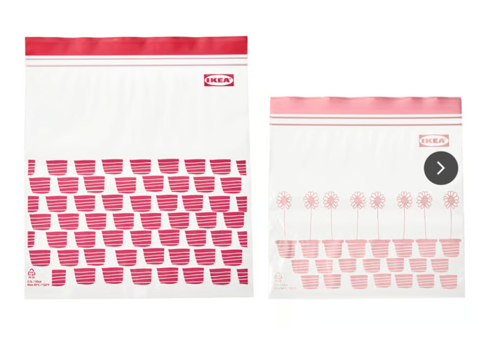 ikea ISTAD Beutel, wiederverschliebar, gemustert rot/rosa, 2.5/1.2 l