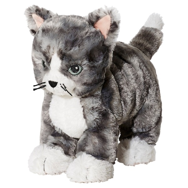 ikea LILLEPLUTT Stofftier, Katze grau/wei