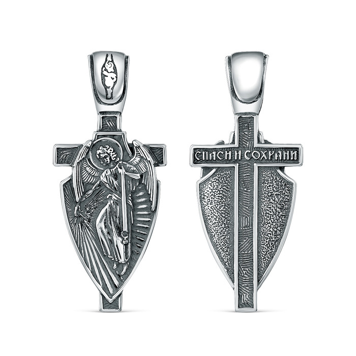 Совместные покупки Курган Ювелирные украшения и бижутерия Подвески — Икона-Крест из чернёного серебра - Ангел Хранитель, 3,5 см 925 пробы К3-362ч