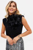 Vilatte Топ из трикотажа в широкий рубчик D43.223 черный с белым