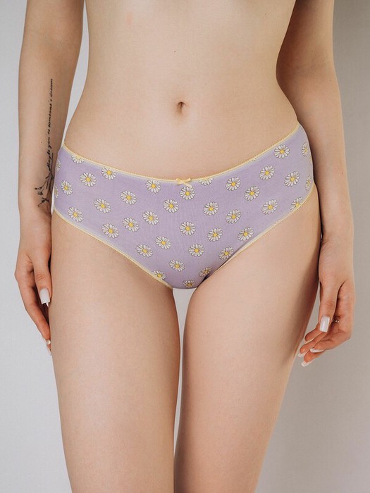 Они выполнены в фиолетовом цвете с нанесенным цветочным принтом с изображением ромашек.