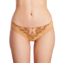 Украшением трусов танга Indefini является розовое кружевное обрамление и геометрический принт с изображением контуров ёлочек и звёздочек.