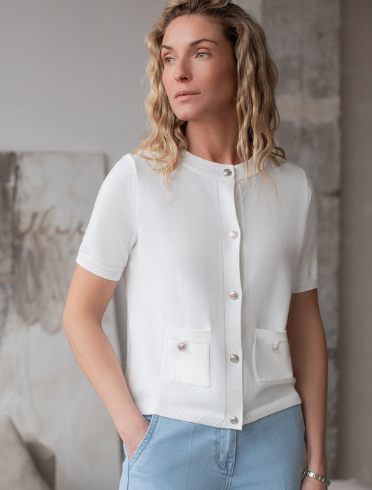 Совместные покупки Курган Женская одежда Футболки — Кардиган c коротким рукавом вязаный из хлопка с акрилом