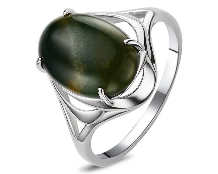 Кольцо, агат моховый, КП87