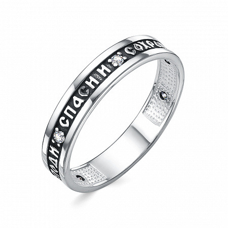 Кольцо (Господи Спаси и Сохрани мя) с фианитом из серебра частично черненое лить