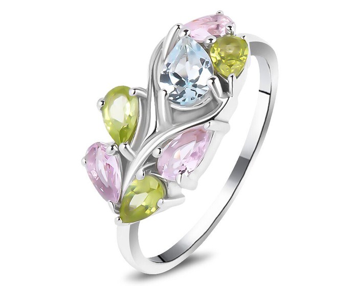 Кольцо, арт.658409 Серебро Серебро 925, р. 17, 2,76 гр., морганит , перидот , топаз